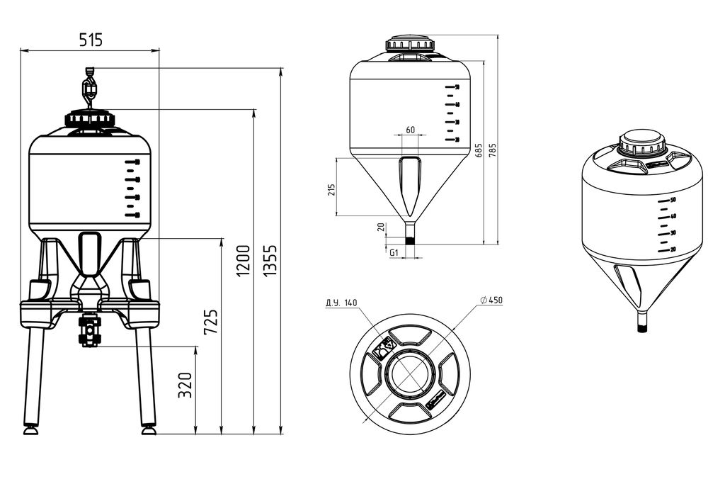 Сверху емкости имеются специальные площадки под установку дополнительного оборудования (фитингов или манометров). В крышку установлен гидрозатвор. В комплектацию емкости входит пластиковая подставка и металлические ножки со специальными шарнирами для надежной установки емкости, на ровной поверхности. Температура эксплуатации емкости от -40 до +60 градусов. Цена розничная - указана при самовывозе со склада в городе Самара.