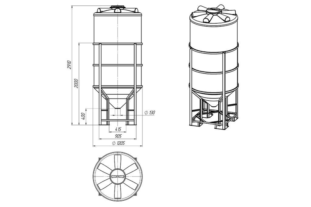 Цилиндрический конический танк в обрешетке с полным опорожнением объемом 2000 литров, изготовлен из пищевого полиэтилена и имеет все необходимые сертификаты. Форма конструкции позволяет использовать ЦКТ в пищевых производствах, а также в технологических процессах, где необходимо организовать смешивание различных жидкостей и последовательное дозирование их в мелкую тару. Крышка 300 мм., пластиковая с воздушным клапаном, плотно закрывает емкость от попадания во внутрь посторонних предметов. Температура эксплуатации емкости от -40 до +60 градусов. Срок эксплуатации более 30 лет. Цена указана при отгрузке со склада в г. Самара.